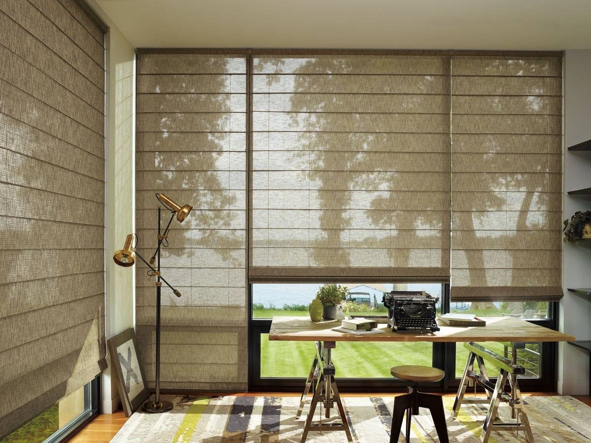 Универсальным вариантом считаются жалюзи и рольшторы, которые полностью удовлетворяют деловой стиль. Они компактны и практичны. При выборе штор на окне должна присутствовать легкая полупрозрачная тюль, которая не будет препятствовать попаданию дневного света в помещение.