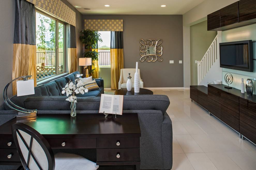 Если вы хотите разделить пространство, стоит поиграть с цветами и использовать другую краску в гостиной части и другую в офисной части. Таким образом можно подчеркнуть разделение на две зоны – жилую и офисную.