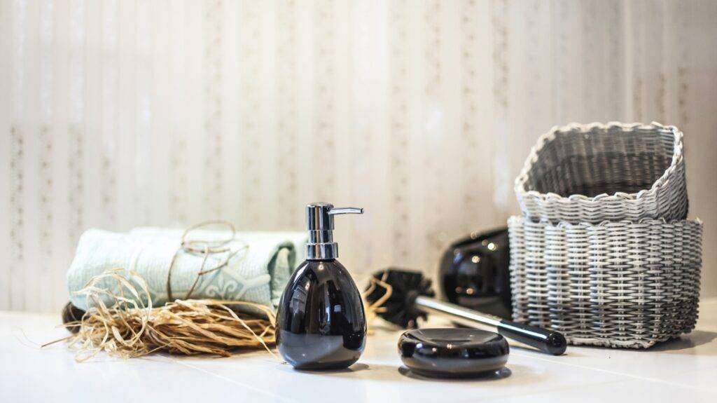 - Дозаторы для мыла и шампуня – чтобы избежать пестрых и разных баночек на бортике ванны, перелить шампуни и геля для душа можно в такие же дозаторы, как и мыло