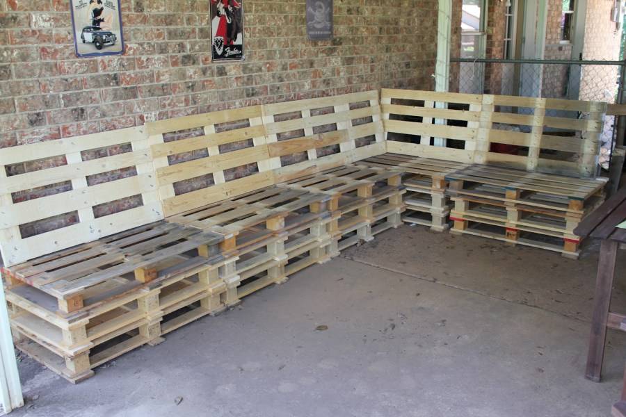 Данный материал можно использовать и для сборки другой дачной мебели. Например, большой популярностью пользуются диваны, собранные из этих деревянных элементов. В этом случае можно просто поставить поддоны один на другой, фиксируя их саморезами. Чтобы максимально упростить работу, диван можно расположить возле стены здания. Несколько поддонов, используемых в качестве спинки, просто прикладываются к ней.
