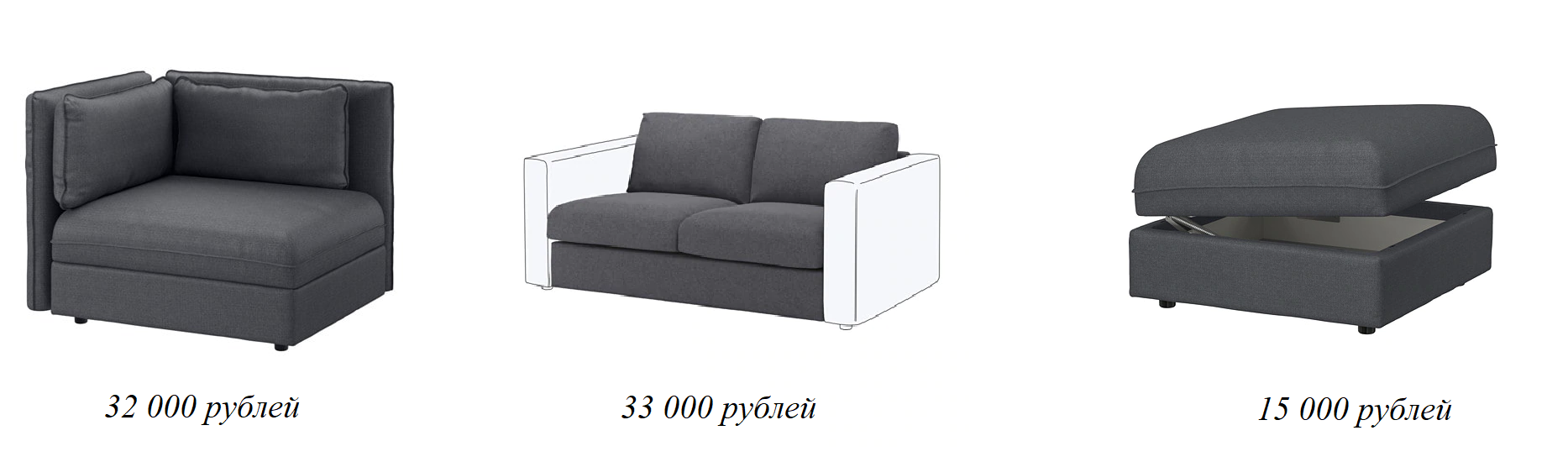 «Ландскруна» есть в обивке из ткани и из экокожи. Кожаные модели «Ландскруна» уже выходят за рамки средней ценовой категории. Например, белый из экокожи стоит 69 999 р. Среди текстильных есть модели от 35 999 руб. (за двухместный) и от 49 999 руб. (за трехместный).