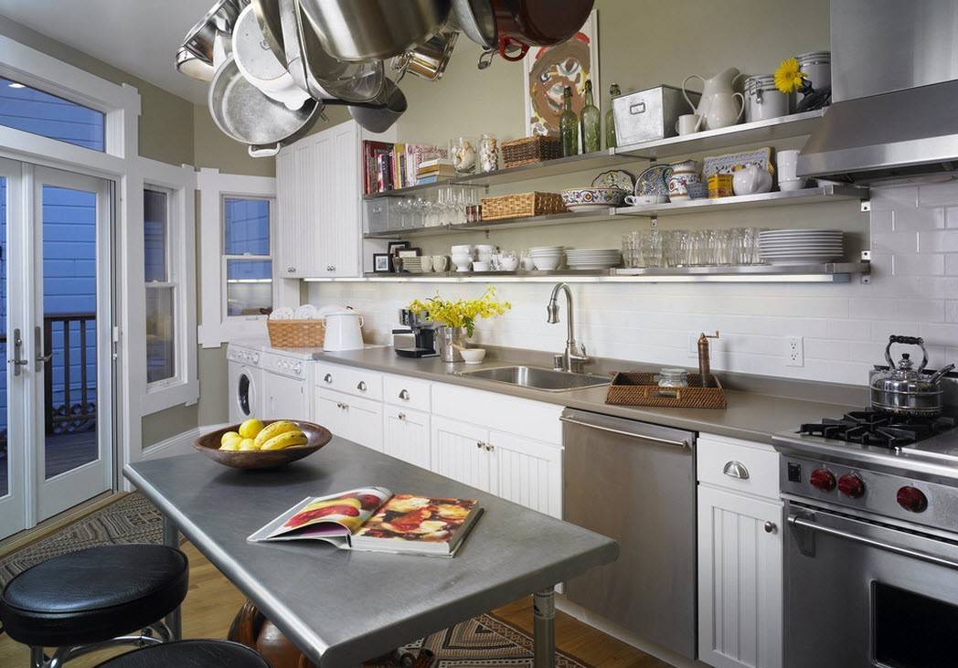 3. Выиграть пространство можно за счет глубины шкафчиков. Чем они глубже, тем больше занимают места. А все ли наполнение шкафа вы используете? Возможно, пара дополнительных полок изменит ситуацию?