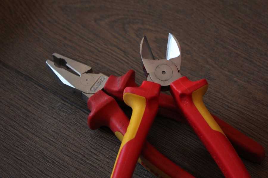 - Кусачки — это специальный инструмент для перерезания проволоки и проводов. Электромонтажные кусачки обязательно должны иметь прорезиненные ручки, поскольку только так можно обезопасить себя от удара током. Возможна замена резины на пластмасс — такой инструмент тоже подходит для работы с проводами.