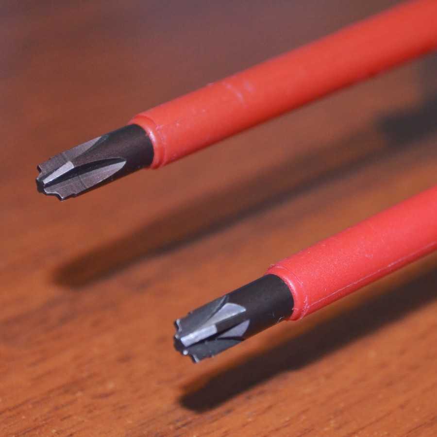 Рабочая часть имеет сечение в виде шестиконечной звездочки. Крепеж с таким наконечником применяется при сборке мобильных телефонов и другой техники, потому сфера применения этой модели очень узкая.. Кончик крестовой отвертки