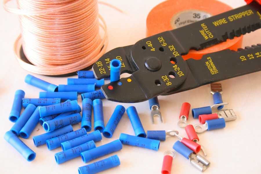 - Термоусадки, дюбеля, саморезы, гильзы, наконечники и т.п. Для электромонтажа необходимо иметь ремонтные изоляционные материалы, термоусадочные трубки, опресовываемые наконечники, соединительные гильзы, монтажные шурупы.
