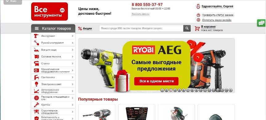 Название этого интернет-ритейлера, пожалуй, очень красноречиво. Здесь и в самом деле имеются практически все инструменты. Ни один из строительных аспектов здесь не забыт. Огромный перечень ручных инструментов дополняется обширным набором электрооборудования. Впечатляет и перечень марок, которые можно тут отыскать: Patriot, DeWalt, Stanley, Ryobi, Inforce.