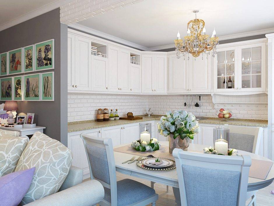 В качестве дополнительных оттенков используется вся палитра пастельных тонов. Как они сочетаются между собой, вы можете посмотреть на фото кухни во французском стиле.