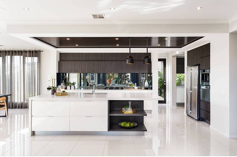 Как и любая стильная современная кухня требует тотальной встроенности всей техники и мебели — не должно быть тёмных углов, верхних шкафов не до потолка, отдельностоящих плит и микроволновок.