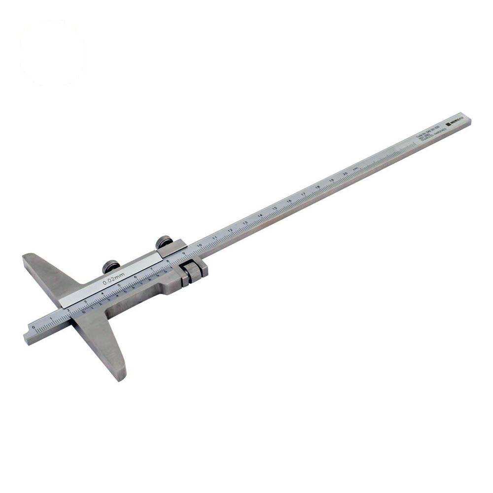 Классическая модель с максимальной длиной измерения 300 мм. Цена деления прибора равна 0,02 мм. Устройство дополнено функцией глубиномера. Такой измеритель незаменим при проведении слесарных работ. По отзывам реальных пользователей, штангенциркуль Matrix 316345 полностью их устраивает в работе. Измерительный бегунок передвигается плавно. Вес для использования комфортный — чуть больше 700 граммов.
