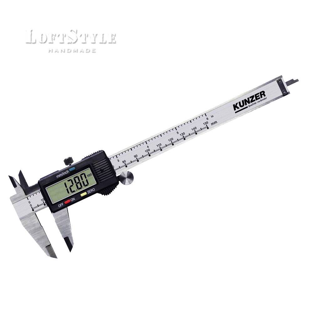 Штангенциркуль электронный или цифровой отличается наличием электронного табло на подвижной губке, которое показывает результат измерения с точностью до 0,01 мм. Очень удобна функция, с которой можно установить начало отсчета с любой точки, а также менять единицы измерения и количество символов после запятой. Данные можно синхронизировать с компьютером, передавая показатели туда. Обычно прибор дополняют клавишей выключения и обнуления результатов. Основной модуль конструкции выполняется из нержавеющего металла, корпус же из пластика.