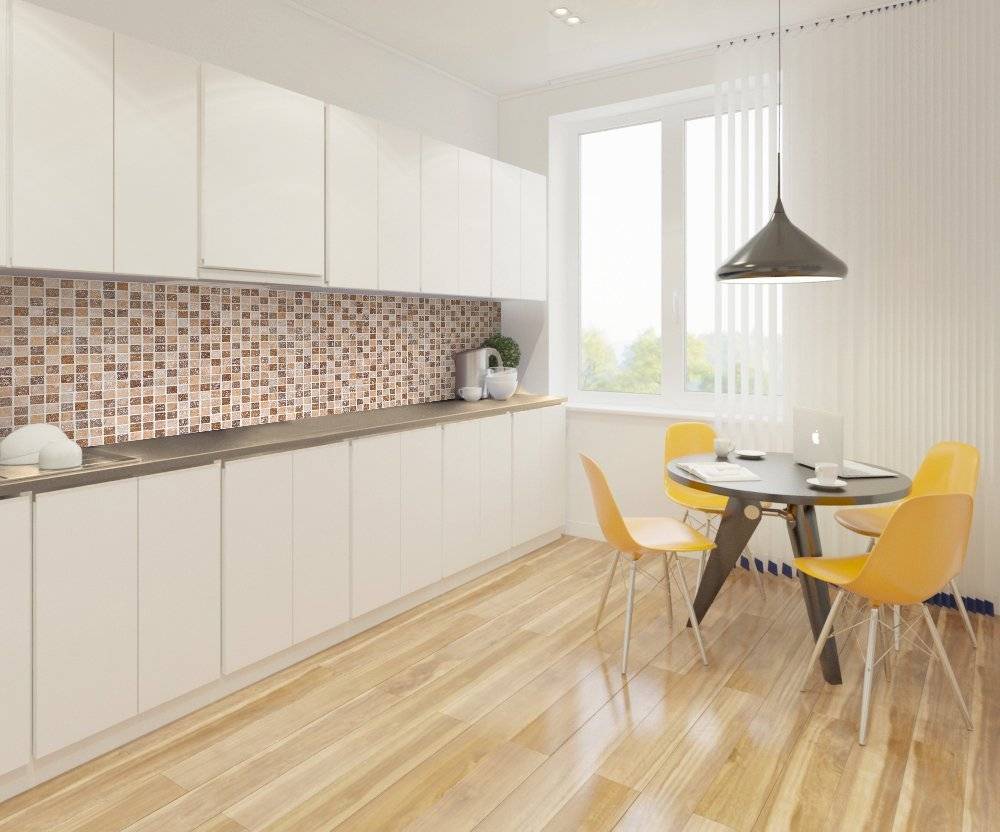 - материалы для белого легче собирать. Фартук для белой кухни следует выбирать в светлых тонах. Это сделает пространство живым и веселым.