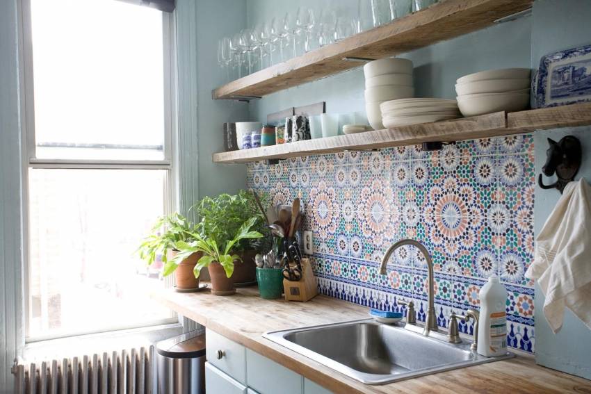Музыка кантри напоминает фермерское ранчо, поэтому здесь выбирают камень, дерево или имитацию натуральных материалов. Прованский стиль наоборот предполагает использование светлых тонов и мелких элементов. Здесь подойдет мозаика, светлая плитка, панели МДФ или стекло.