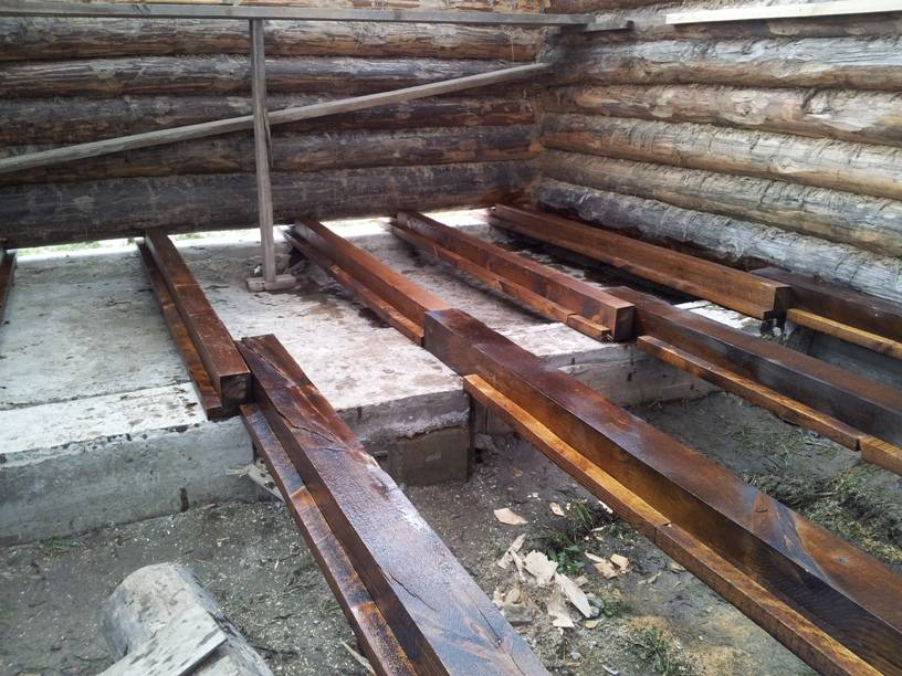 - Лаги закладываются на этапе постройки здания, и крепятся либо непосредственно к фундаменту, либо к первому (окладному) венцу.