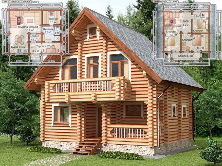- Бревенчатые здания самые долговечные, но имеют сложную технологию возведения. Подходят для любителей эко-стиля.