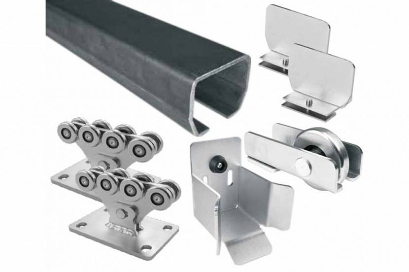 Составляющее элементы такие же, как и в распашной конструкции, за исключением наличия откатного механизма.