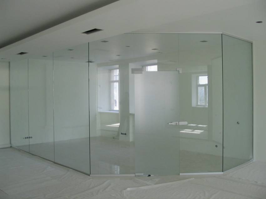 Установка стеклянных перегородок маятникового типа включает такие этапы: