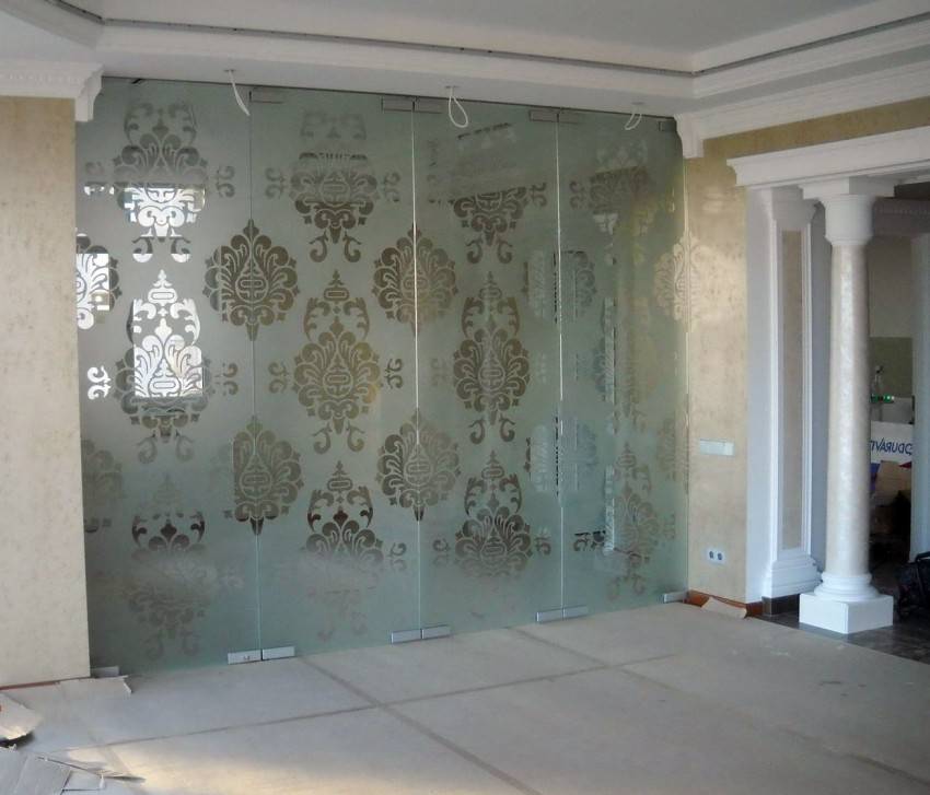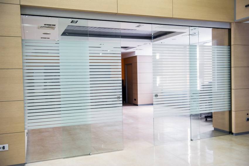 Есть и каркасные стеклянные перегородки. Они представлены каркасом из металлического профиля и стеклянными фасадами. Часто используют зеркальные конструкции или перегородки с фотопечатью на стекле.