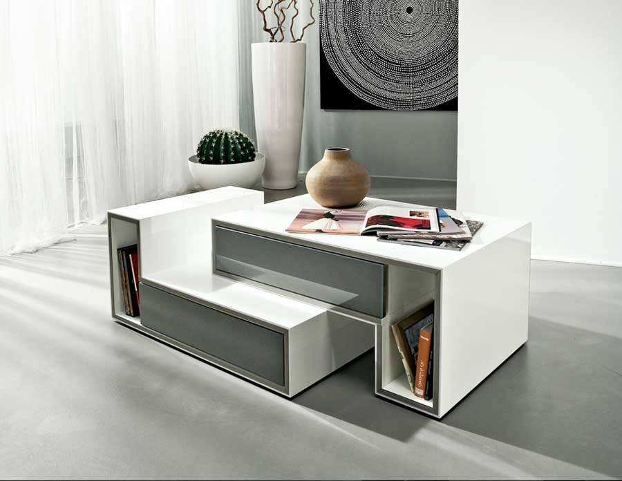 И, наконец, в-четвертых – универсальность. Изначальная конструкция журнального стола тумбы просто великолепна. Его можно заузить, удлинить и он не потеряет своего стильного вида. Его можно даже превратить в столь популярную удлиненную тумбу ТВ, разместив в каждом модуле не по одному ящику, а по два. Можно добавить полки в ниши. Из стекла. И подсветку. В общем, превосходная основа для творчества, изготовления уникального журнального стола тумбы своими руками.