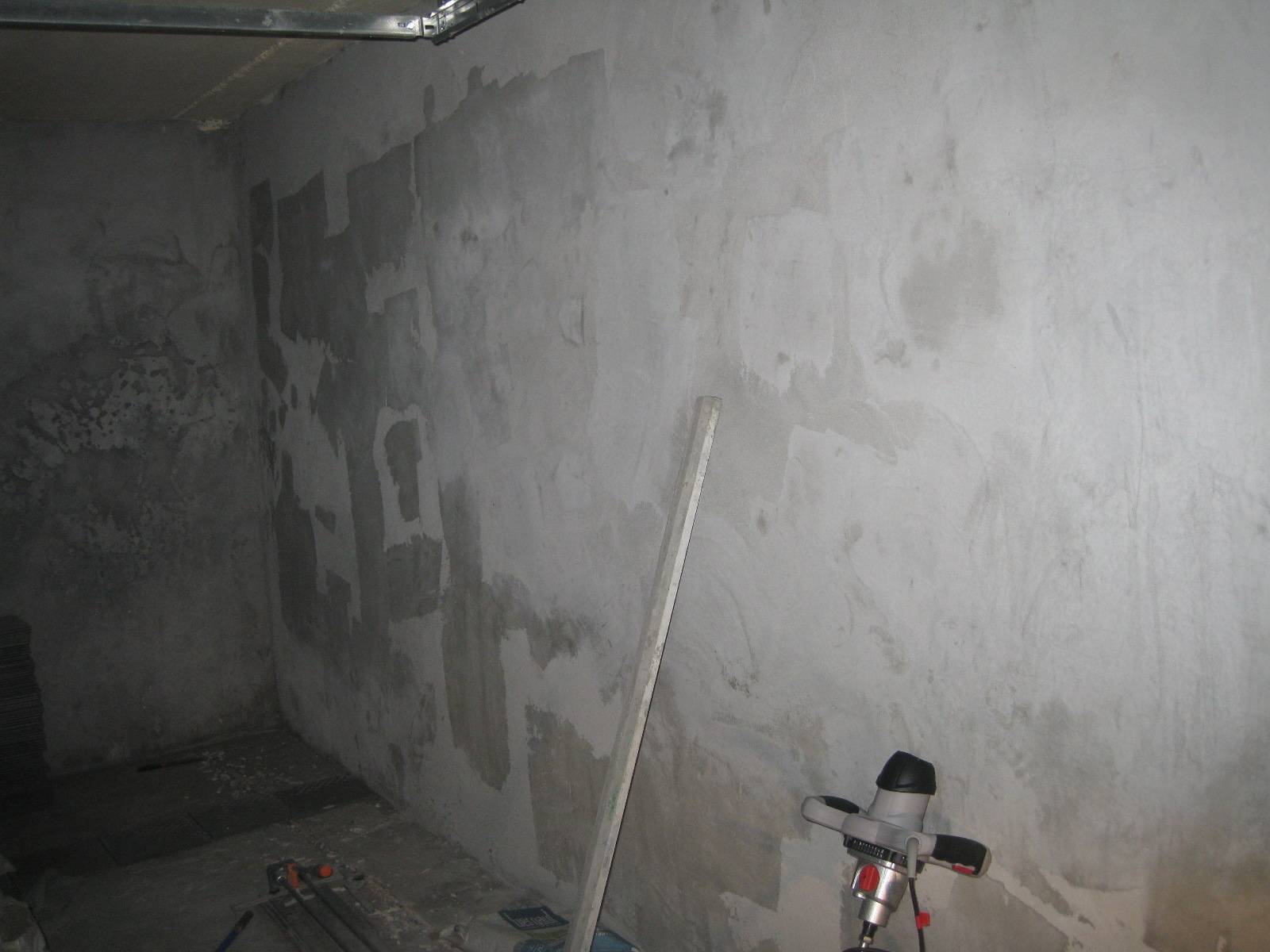 Удаляют старую штукатурку. Если она держится крепко, снимают только проблемные участки, а общий слой оставляют.