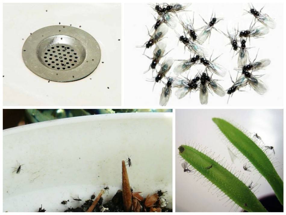 Во взрослом состоянии они безвредны, но серьезную проблему создают их личинки. При попадании в организм человека они могут вызвать энтерит и расстройство кишечника. Сциариды и белокрылки обычно вредят только растениям. Первые поедают корневую систему цветка, а вторые — мягкие, сочные листья.