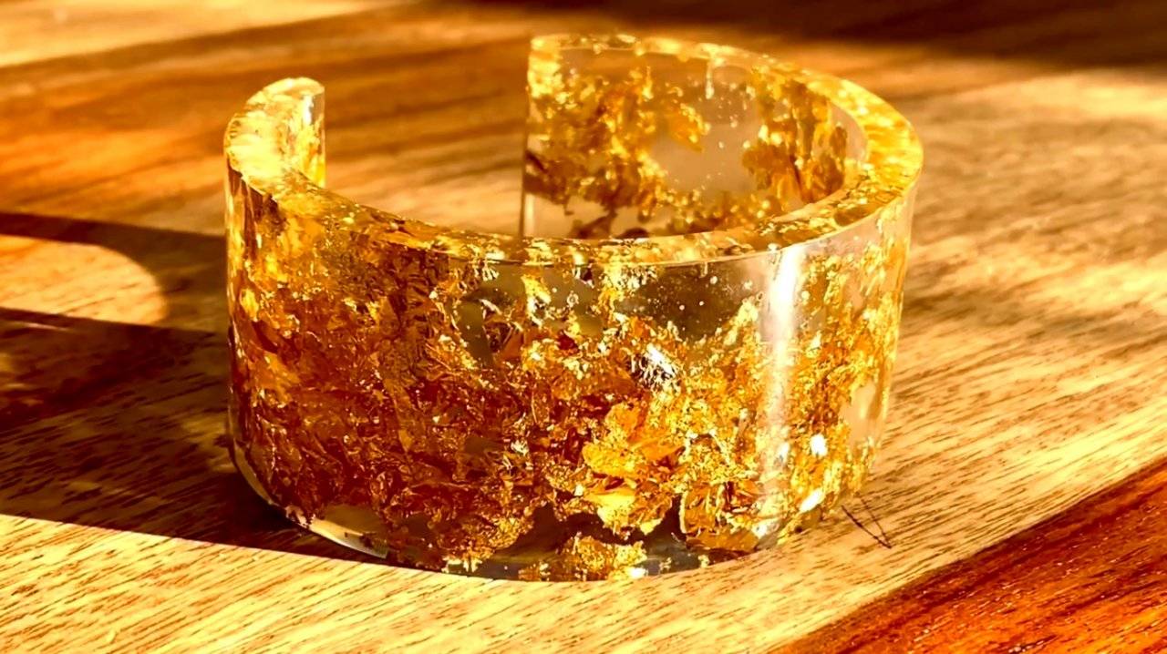 Для создания этого браслета потребуется лучшая смола для изготовления украшений. Она должна быть идеально прозрачной, чтобы продемонстрировать эффектный блеск золота.