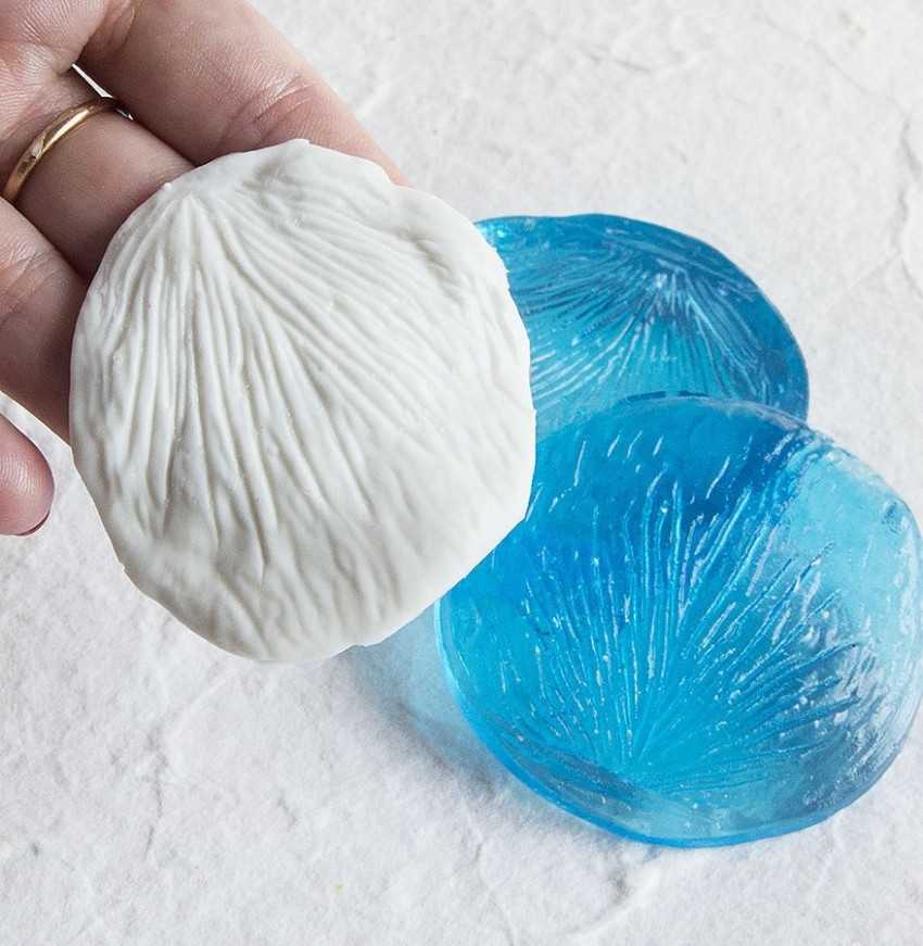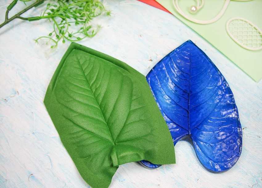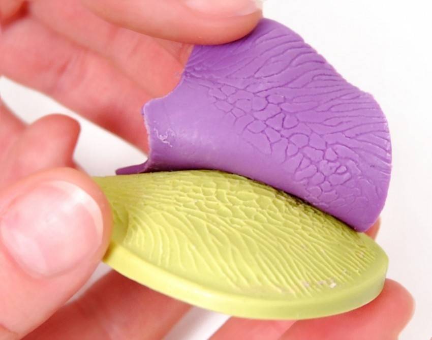 Для изготовления сложных поделок используют молды — вайнеры. Они изготавливаются из плотного пластика с глубокими текстурами на своей поверхности. Эти детали позволяют сделать глубокую фактуру на цветочном лепестке или листовой пластине.