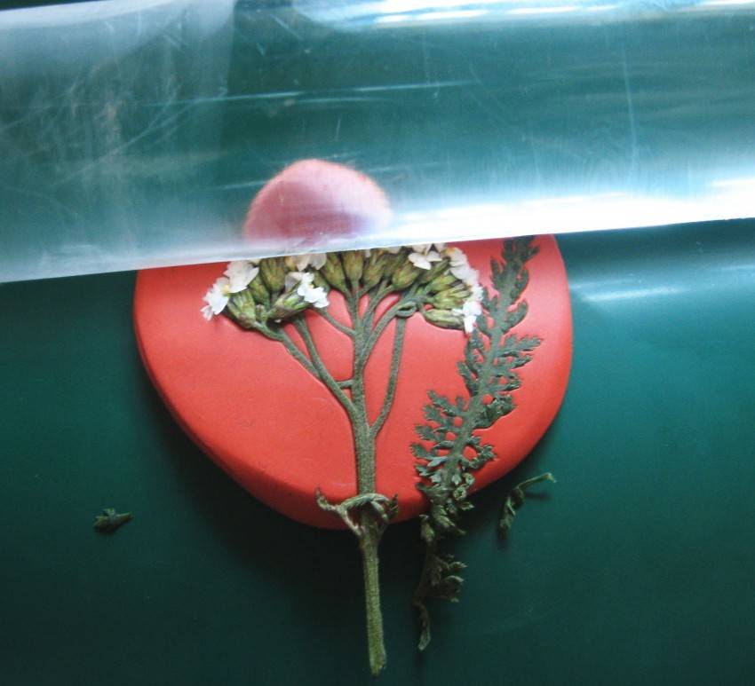 В работе никогда не используются живые растения: они теряют презентабельный внешний вид при работе с составом. Их нужно предварительно засушить, например, положив между страницами книги недельки этак на 3-4.
