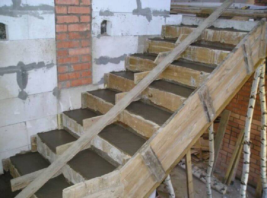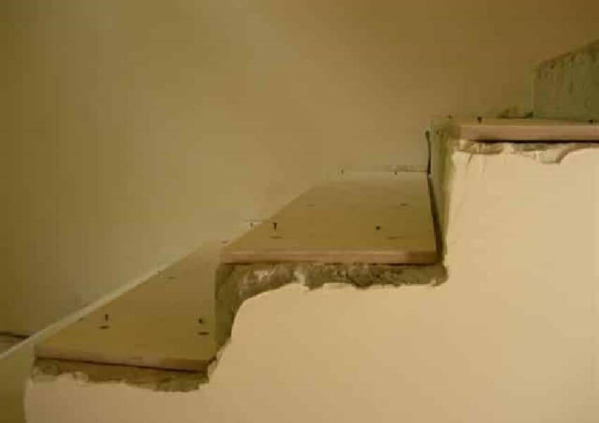Перед тем как приступать к монтажу ступенчатых элементов, нужно дождаться полного высыхания конструкции. В противном случае, обшивка напитается от сырого бетона влагой и деформируется в дальнейшем. Сохнуть лестница должна не менее трех недель.