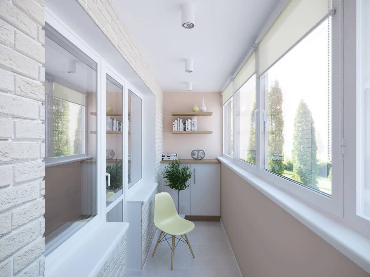 Грамотное сочетание цветов позволит изменить помещение в визуальном плане. Для увеличения пространства нужны светлые тона. Укоротить слишком длинную лоджию поможет следующий ход — сделать меньшую стену более темной, чем остальные.