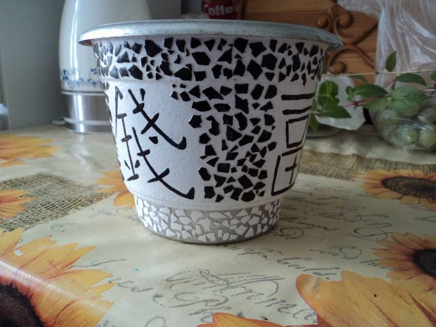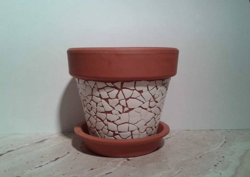 Один из самых интересных и, наверное, кропотливых методов отделки кашпо для цветов своими руками. Как бы это странно не звучало, но скорлупу можно использовать в качестве подручного материала. Очищенная с вареных яиц скорлупа легко поддается дроблению, она хорошо ломается. Конечно, придется немного повозиться, но результат того стоит. Скорлупу можно покрасить, сварив в одной кастрюле с луковой кожурой или погрузив в раствор с краской. Главное, не забыть в начале работы убрать с кожуры пленку, а также обезжирить и просушить нежный отделочный материал.