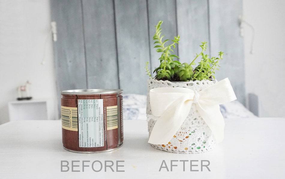 Все, что вам нужно, это клей и несколько видов кружева, которое завалялось в шкафу. Замечательное домашнее решение для террасы и балкона. Декорирование очень простое. Вы можете выбрать цветное кружево, соответствующее декору вашего интерьера или террасы. Если цветочный горшок остался стоять дома, его не нужно дополнительно закреплять. Если вы планируете поставить на балкон, террасу или в сад, то рекомендовано покрасить ткань прозрачным лаком, который защитит кружево и горшок от воздействия неблагоприятных погодных условий.