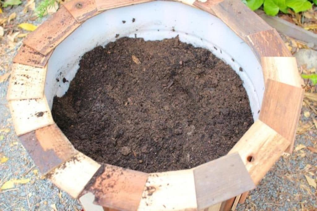 Затем нужно просверлить отверстия для дренажа. Их должно быть много. Это позволить жидкости стекать из емкости с растениями.