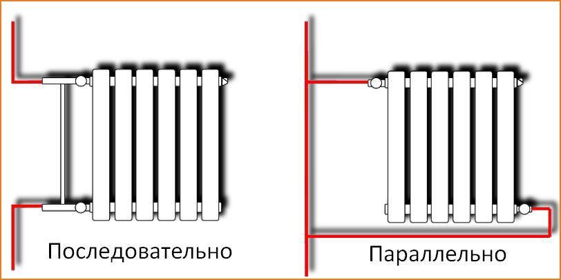 - Подключение происходит друг за другом через тройники и запорные краны.