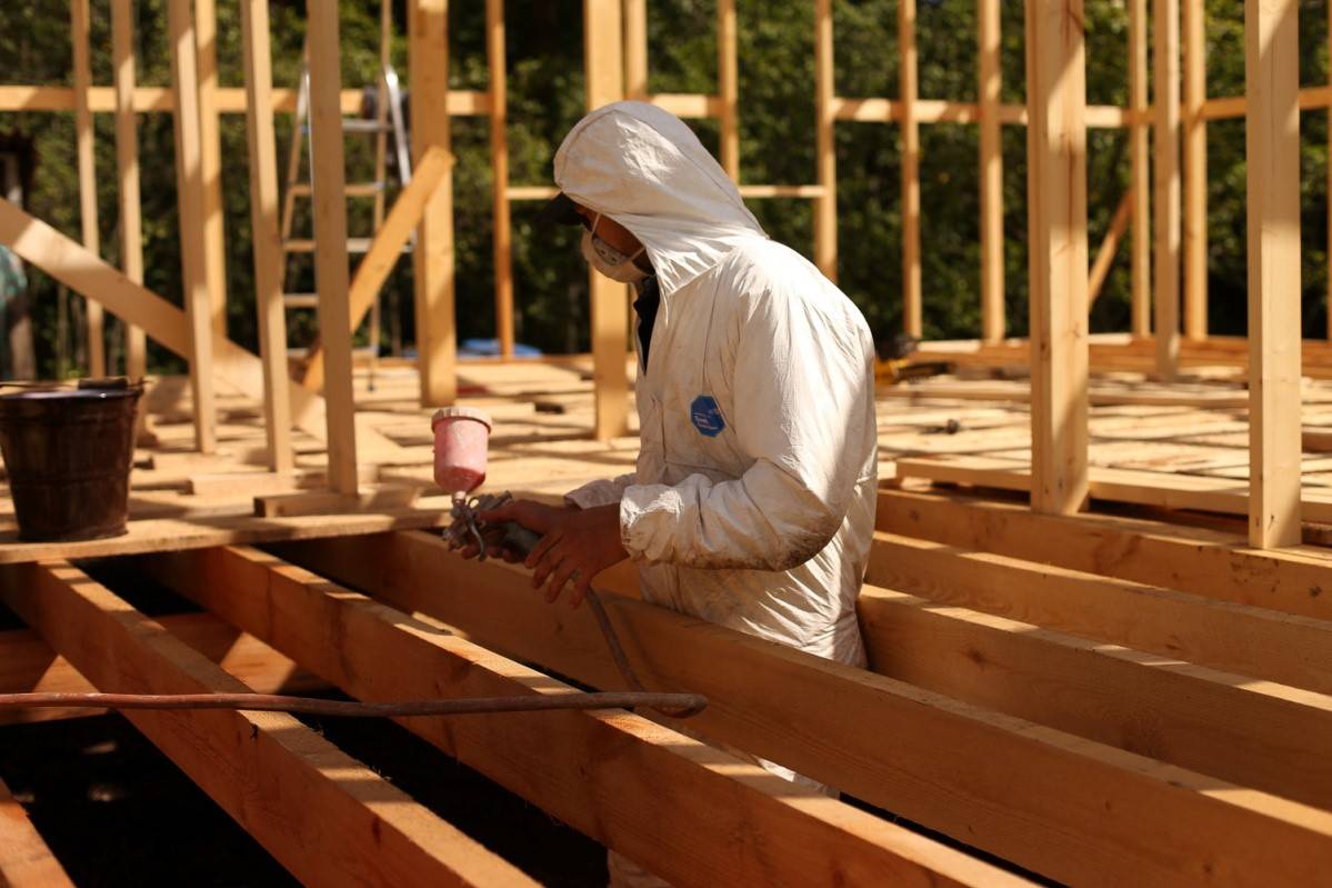 Обработка чердачных помещений огнезащитным составом делается при температуре воздуха внутри помещения выше ноля, а место обработки должно хорошо проветриваться.