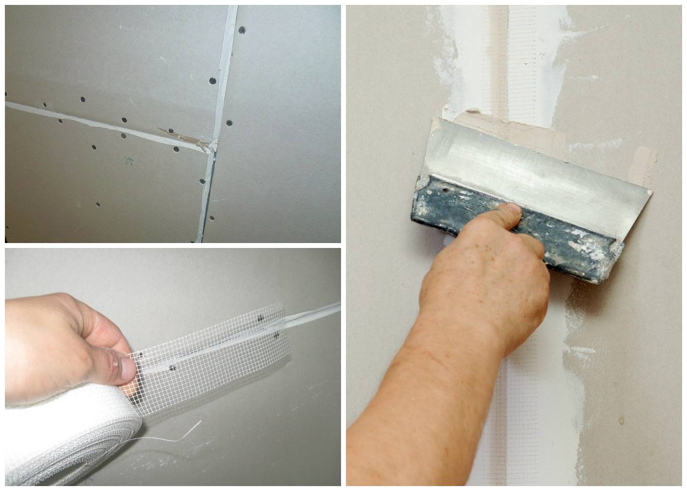 Хоть листы ГКЛ и применяются для выравнивания, но это помогает от крупных вмятин. Саму же поверхность листов также необходимо обработать предварительно перед окрашиванием. Швы между листами обработайте шпаклевкой. После этого состав наноситься на поверхность полностью.