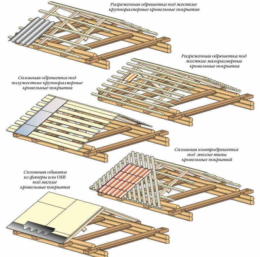 Учитывая, что настил крыши гаража чаще всего устраивается из рулонных материалов, логично использовать сплошную обрешетку по стропилам из обрезной, необрезной доски или фанеры.