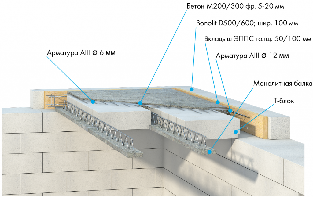Можно использовать плиты перекрытия из газобетона. Плиты стягиваются при помощи специального хомута, установленного заводским путем.