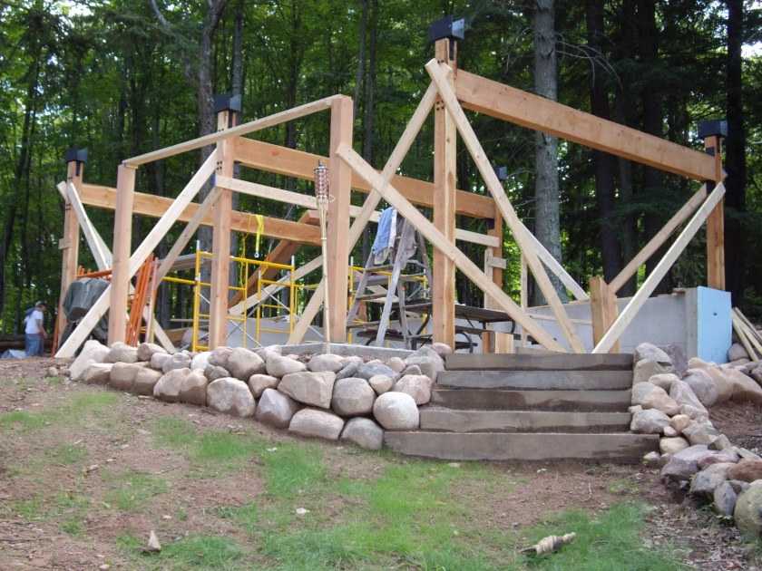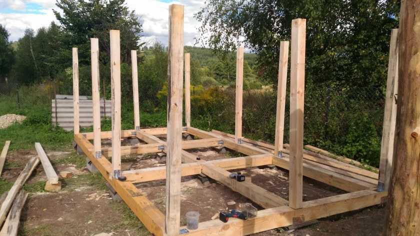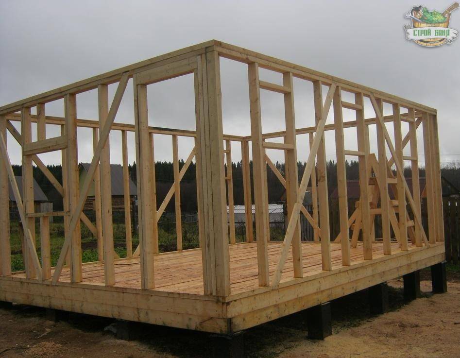 Для строительства стен необходимо сделать основу из заранее подготовленных брусьев. Каркасная технология заключается в соединении вертикально расположенных элементов в единую конструкцию.