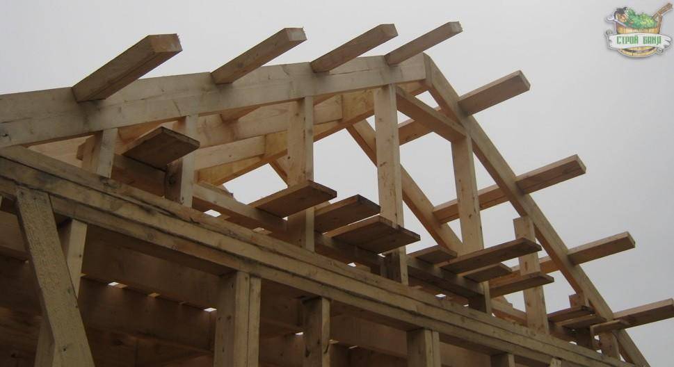 Обратите внимание, что на крайних стропилах сделаны выпилы под консольные балки для выноса крыши