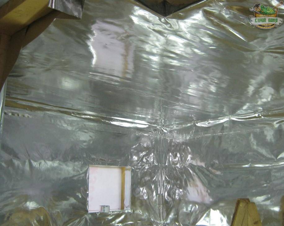 Пароизоляционная фольга «Изоспан FB» на стенах и потолке в парилке