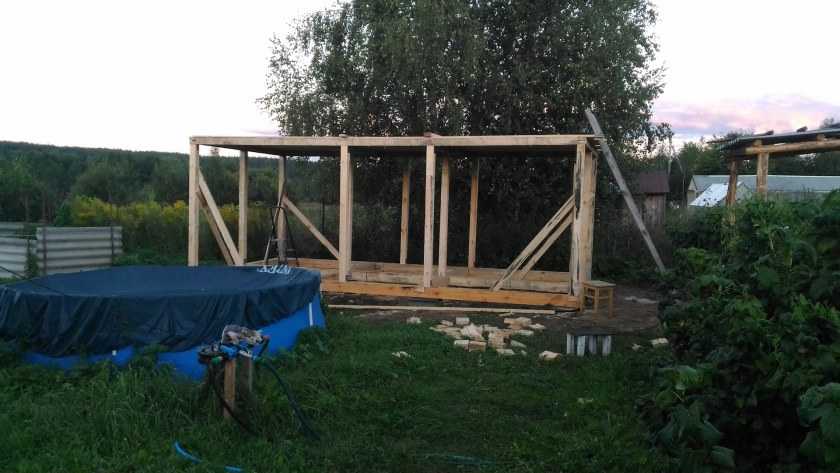 Сарай в этом плане гораздо проще — это тот же каркасник, только обычно без утепления, и либо без окошек, либо с небольшим. Что-то вроде предбанника, только холодный и побольше размером.