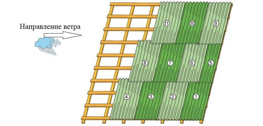 - нахлесты волн шифера должны быть по преобладающему направлению ветра, чтобы ветер не задувал под шифер и не стремился приподнять его.