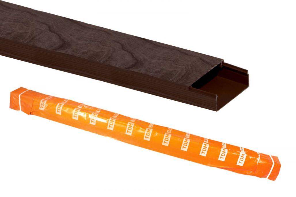 Короб с единственной секцией, имеющий одностороннюю крышку. Подойдет, если нужно протянуть кабель от входа в квартиру до телевизора или компьютера. Или же чтобы спрятать шнур от кондиционера к розетке.