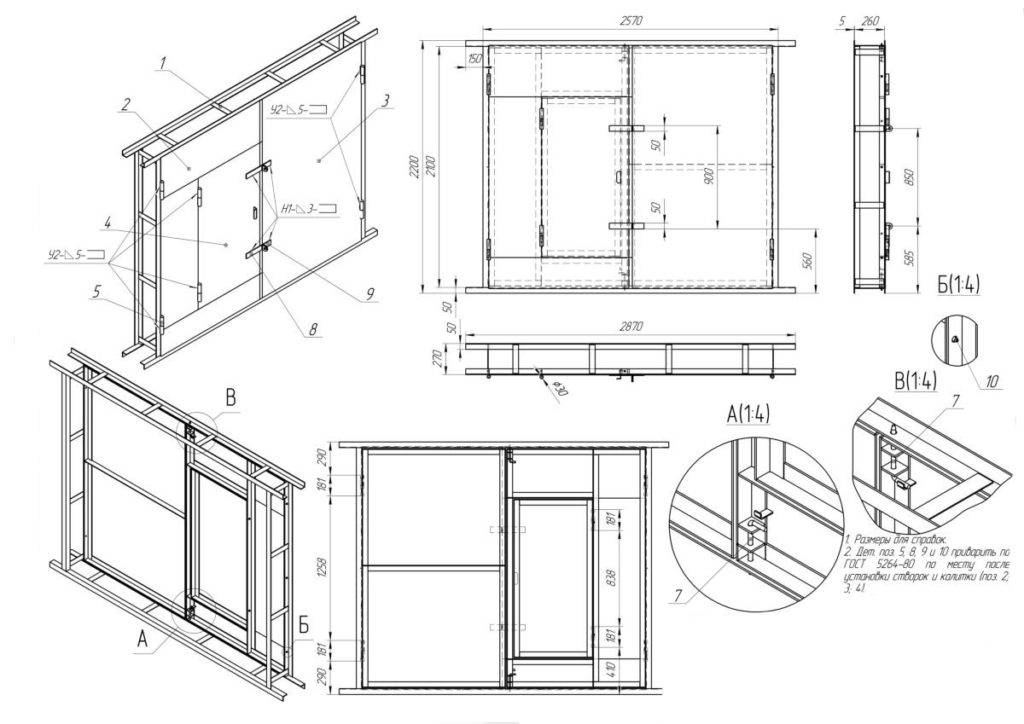 Следующим шагом после подготовки чертежей является подбор необходимых материалов. Конструкция может быть выполнена из сэндвич панелей либо утолщенных металлических листов. Второй вариант более дорогой, но данные конструкции отличаются повышенной прочностью и небольшим весом, что упрощает процесс монтажа. Многослойные сэндвич панели имеют большую массу за счет дополнительного утепления и толщины.