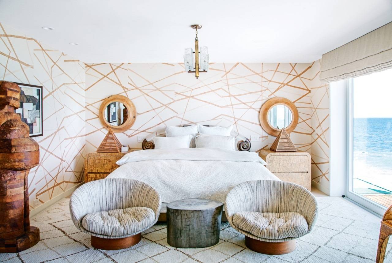 Совет: закройте тканью неприглядные элементы потолка (отлично, если это будет легкий струящийся гобелен с привлекательным узором). Если это не большая балка или косой потолок — покрасьте его в тот же цвет, что и весь потолок. Это сделает их менее жесткими. Если это люстра – немедленно уберите ее.