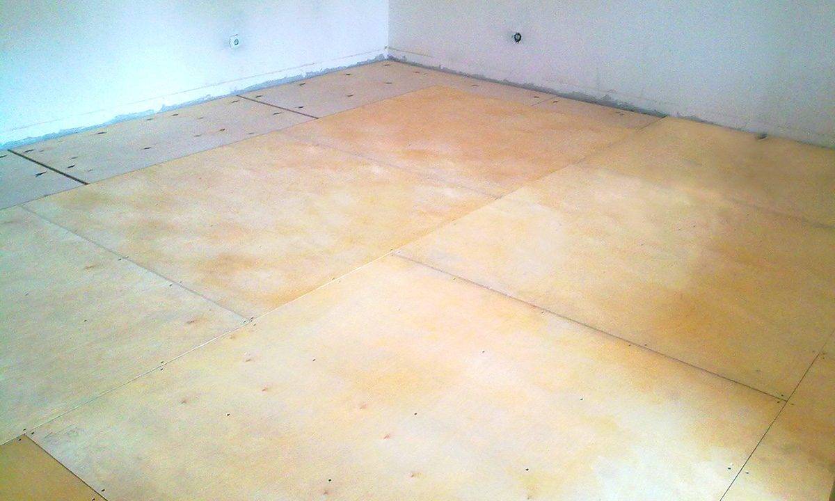 Фанерное основание требует выравнивания для устранения перепадов по высоте.