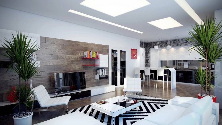 - Навсегда забудьте об использовании только(!) черно-белой гаммы. Их баланс смотрится гармонично лишь первое время и не в жилых помещениях. Обязательно разбавьте их дуэт яркими красками и другими полутонами.