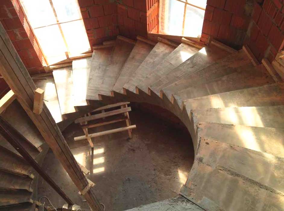 Если вы решили сделать криволинейную монолитную лестницу, то в самой узкой части ступени ее ширина не должна быть менее 12 сантиметров (иначе будет велика вероятность оступиться, упасть и получить травму при ее эксплуатации).