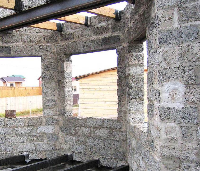 Щепки, которые являются составляющими блока и обеспечивают прочность, образуют полости. Воздух, накапливаемый в таких промежутках, считается идеальным теплоизолятором. Но в этом есть и минус, так как слишком быстро расходуется кладочный раствор.