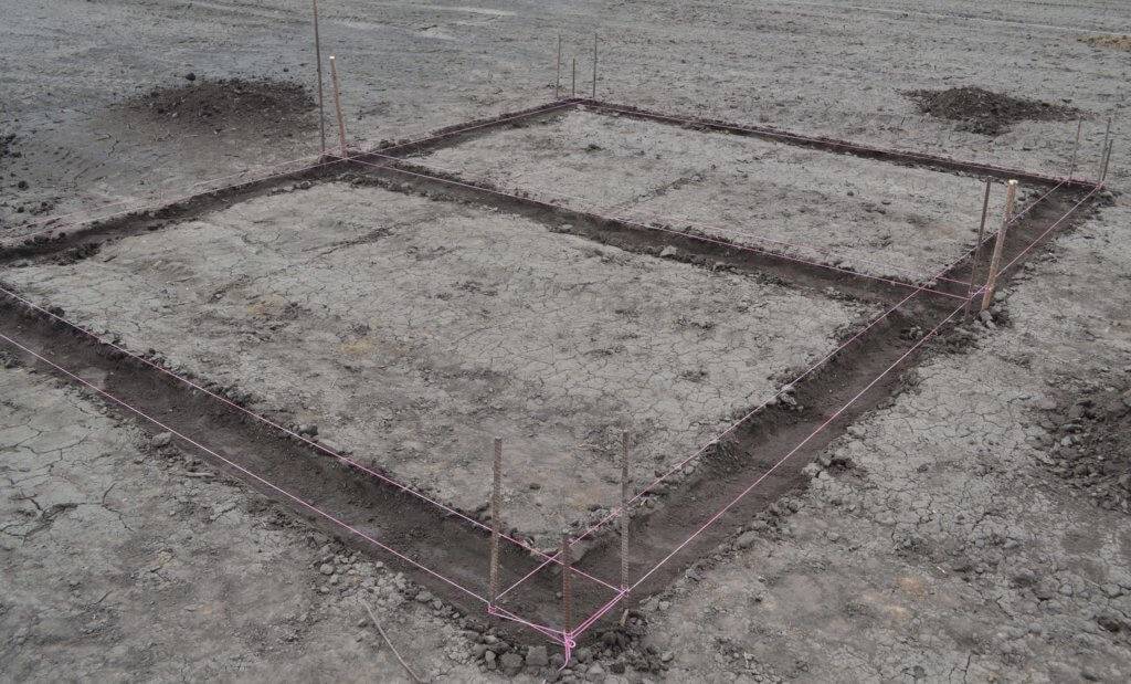 Устанавливаем колья с внутренней стороны, учитывая размеры фундамента и траншеи. По аналогии натягиваем нитки вдоль периметра. Рекомендуется использовать заготовленный чертеж.